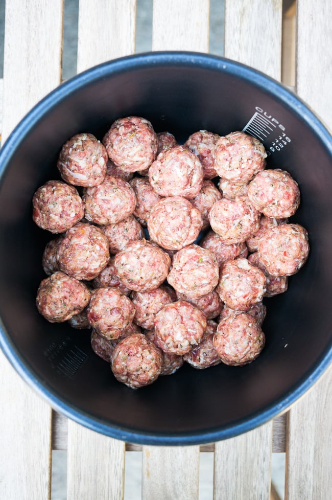 These Pressure Cooker Italian Meatballs are tender, flavorful, the perfect base for a meatball sandwich, and best of all, cooked in only 5 minutes!