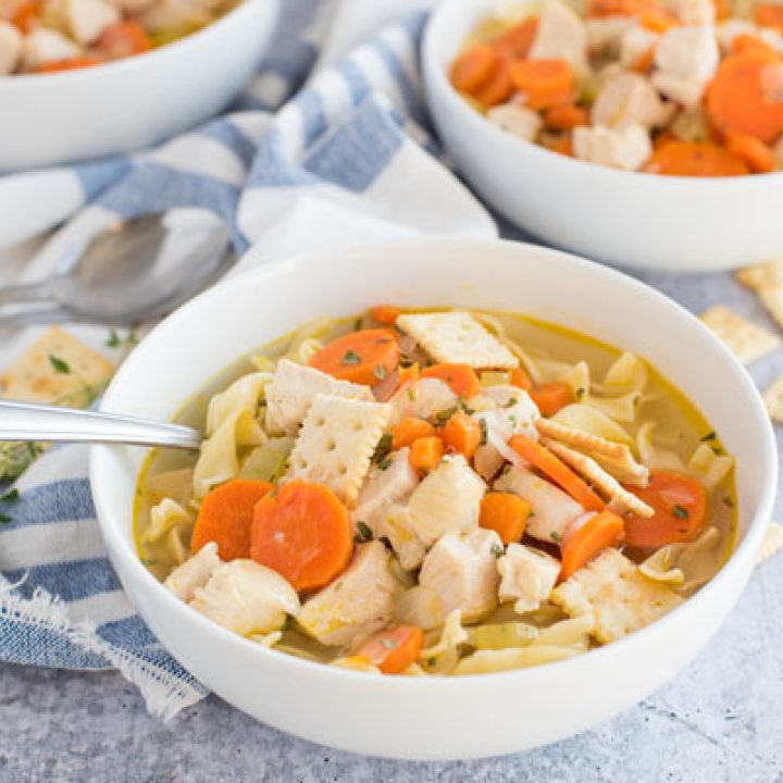 This Instant Pot Chicken Noodle Soup is easily halved or doubled.