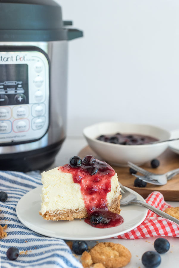 Cheesecake is probably my favorite thing to make in the pressure cooker. And Pressure Cooker Berry Compote might be my second-favorite Instant Pot recipe. Naturally, I couldn’t resist combining the two into this patriotic summer dessert.