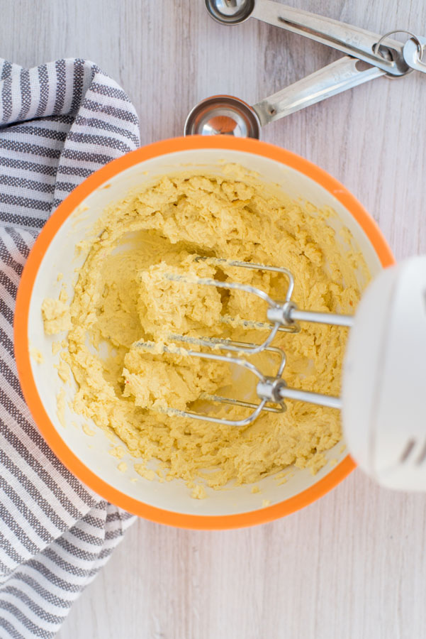 Mix all of the filling ingredients together with a hand mixer if you have one. If not, a whisk will work. You want the filling to be smooth, soft, and fluffy.