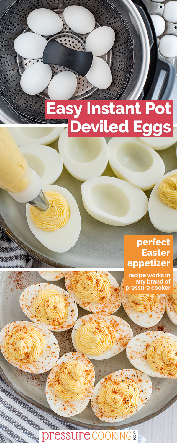 Zesty, flavor-packed Pressure Cooker / Instant Pot Deviled Eggs made with Greek yogurt and your favorite mustard are perfect for spring celebrations.
