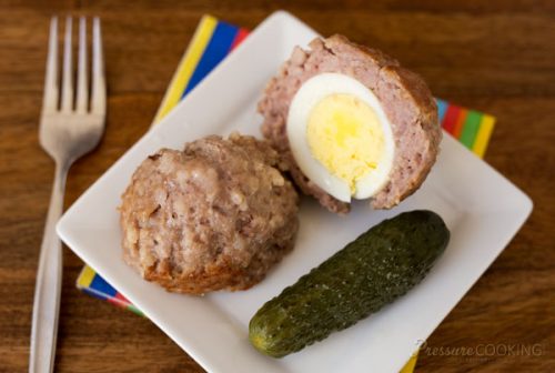 Use your perfect pressure cooker hard boiled eggs to make these healthier Scotch eggs in your Instant Pot. You skip the calories of breading and deep frying, but you get the full sausage-and-eggs flavor of a traditional Scotch egg.