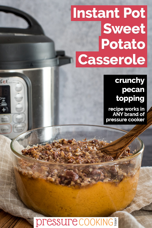 Several years ago, once I began cooking Thanksgiving for the family, I wanted to include a delicious sweet potato casserole for my mom. So I found one that used egg and cream with a crunchy pecan topping, and adapted it for the Instant Pot.