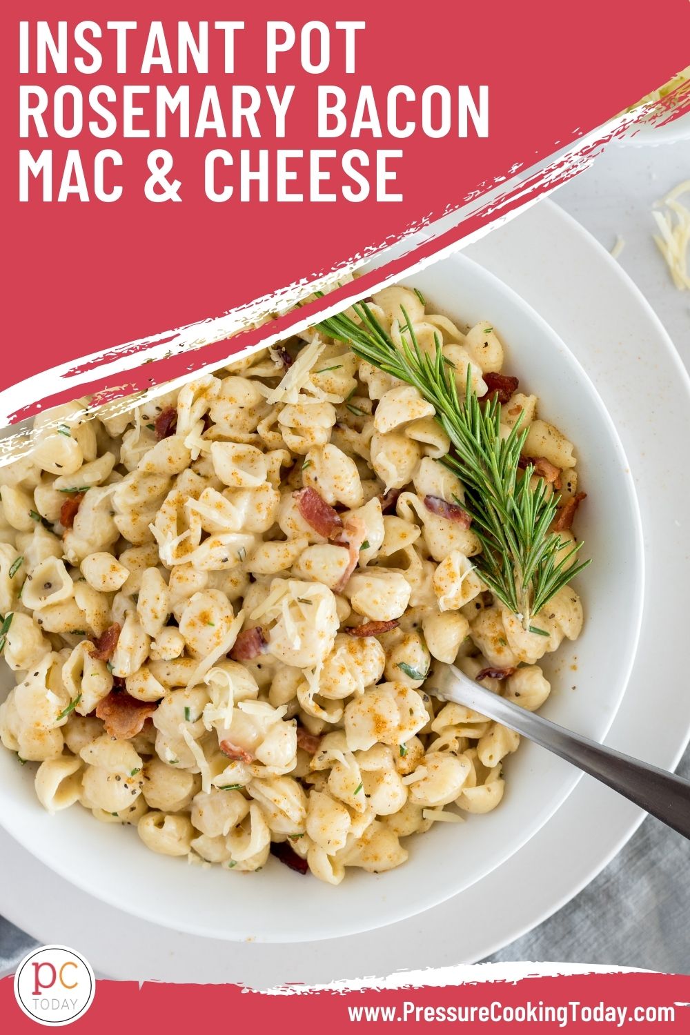 Instant Pot Rosemary-Bacon Mac and Cheese is ultra creamy with melted Gruyere, fresh rosemary, and smoky crispy bacon on top.