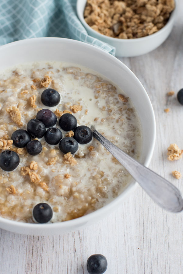 Farro is a delicoius whole grain that's full of fiber to keep you warm and satisfied all morning.