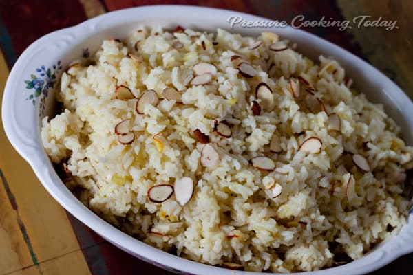 This recipe has a subtle flavor and a nice crunch from the almonds pairs well with almost any main course.