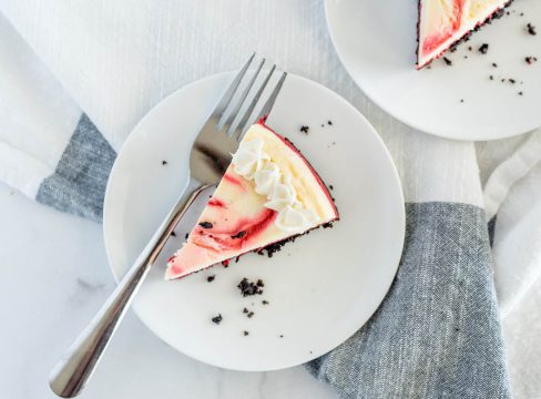 This Red Velvet Cheesecake is made in the Instant Pot with a chocolate crust, a swirled red decoration, and...